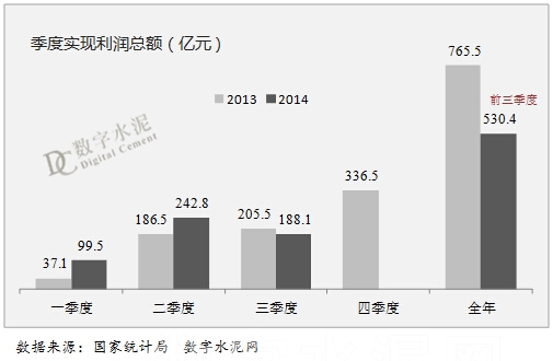 數(shù)字水泥網(wǎng)快訊,根據(jù)統(tǒng)計局最新數(shù)據(jù)顯示,2014年前三季度全國水泥行業(yè)實現(xiàn)利潤總額530.43億元,同比增長22.5%,與前兩個季度相比,增幅繼續(xù)收窄。2014年第三季度水泥利潤總額為188.14億元,與二季度相比下降了22.5%;較去年同期減少17.32億元。